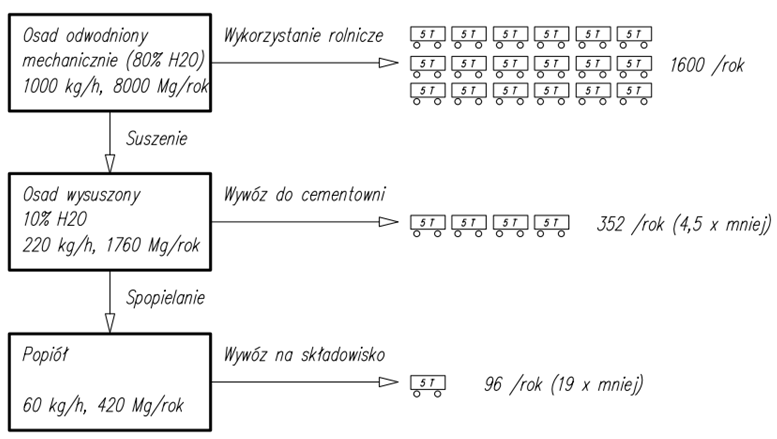 całościowym rachunku oczyszczalni, ciepło zużyte na wysuszenie osadów jest